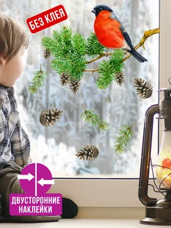 Новогодние статические наклейки Снегирь на ветке