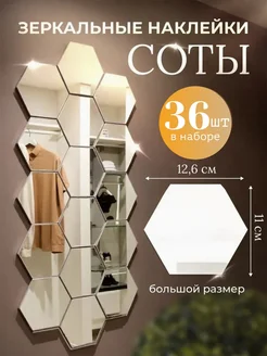 Интерьерные наклейки соты зеркальные для декора 36 шт