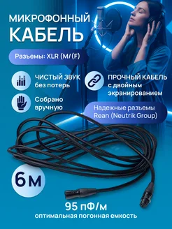 Аудио кабель для микрофона XLR 6 метров