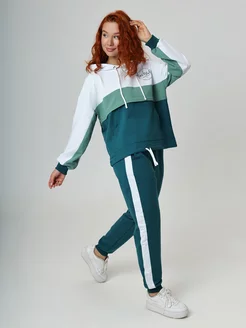 Спортивный костюм трикотажный без начеса с худи на молнии