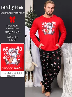 Новогодняя пижама со штанами FAMILY LOOK принт снеговик