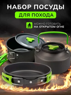 Котелки походные набор (кастрюля-котелок, чайник, сковорода)