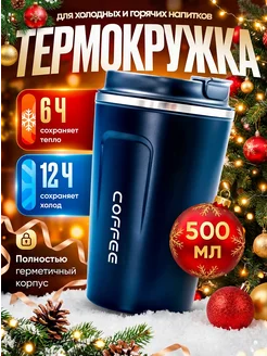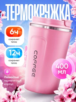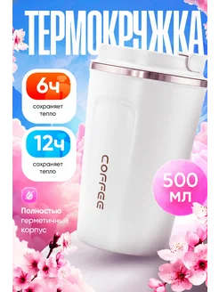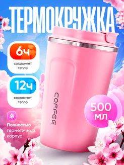 Термокружка для кофе и чая 500 мл автомобильная розовая