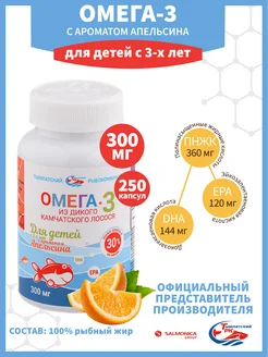 Омега 3 БАД из дикого лосося апельсин детям 250 шт
