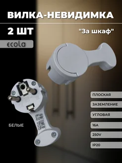Вилка-невидимка плоская 16А 250В с заземлением 2 штуки
