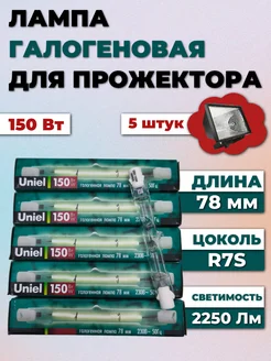 Лампа галогеновая для прожектора 78мм 150Вт R7s 5шт