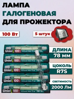 Лампа галогеновая для прожектора 78мм 100 Ватт R7s 5шт