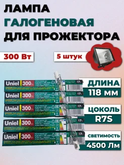 Лампочка галогеновая для прожектора 118мм 300Вт R7s 5шт