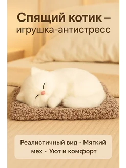 Мягкая игрушка Спящий Котик со звуком мяуканья