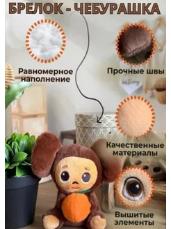 Брелок мягкий Чебурашка для ключей и рюкзака 12 см
