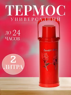 Термос СССР со стеклянной колбой 2 литра пластиковый красный