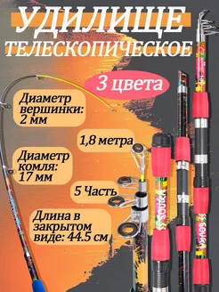 Удочка для рыбалки детская телескопическая 1.8 м, красная