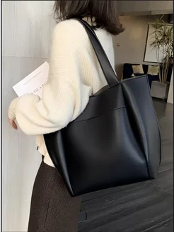 Сумка женская большая черная на плечо шоппер А4
