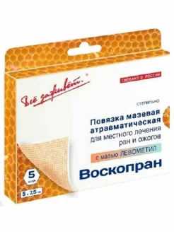 Воскопран с мазью левометил 5х7 5 см 5 шт