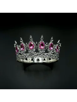 Корона для торта серебристая с розовым, топпер, декор ROYAL