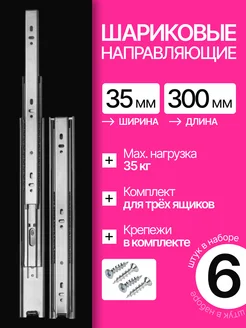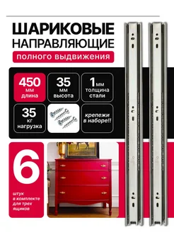 Роликовые шариковые направляющие для ящиков мебели 6 шт