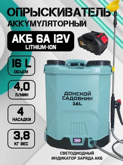 Опрыскиватель аккумуляторный Li-ion ранцевый садовый 16л