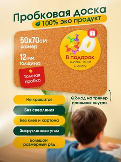 Пробковая доска на стену 50х70 см для заметок 12 мм