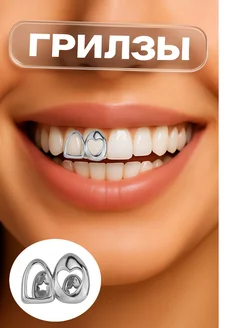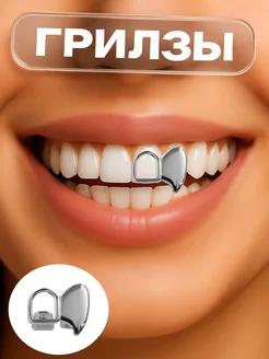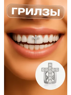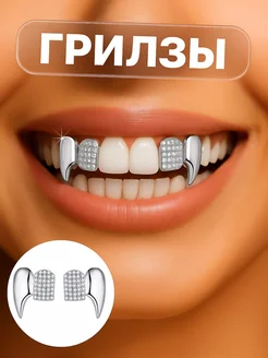 Грилзы зубные серебристая украшения на зубы накладки с фиани…