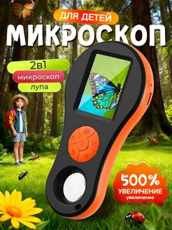 Микроскоп детский карманный с камерой и подсветкой лупа