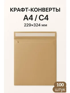 Крафтовые конверты А4 229х324 мм 100 шт бумажные стрип лента