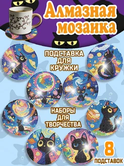 Алмазная мозаика подставка под горячее с дизайном кошек