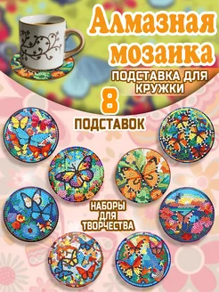 Алмазная мозаика подставки под стакан дети 8шт снежинки