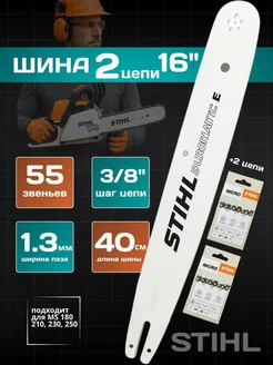 Шина 16" 40см + 2 цепи 55зв для бензопилы, комплект