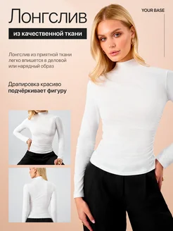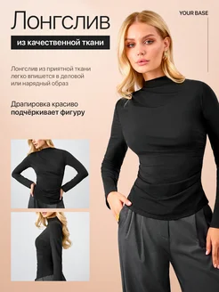 Лонгслив черный облегающий с длинным рукавом с драпировкой