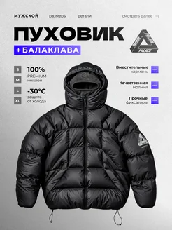 Пуховик зимний с принтом и балаклавой