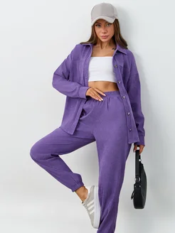 Вельветовый костюм спортивный с брюками оверсайз