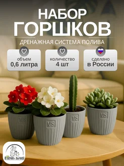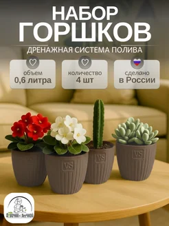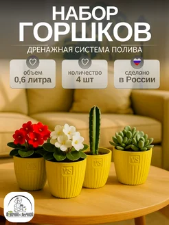 Горшок для цветов с автополивом набор 4 шт Эви 0,6 л