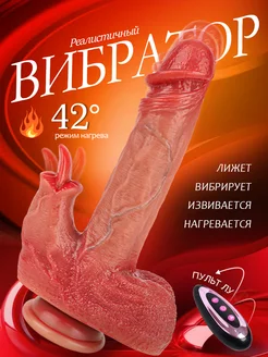 Вибратор реалистичный член с фрикциями подогревом и пультом