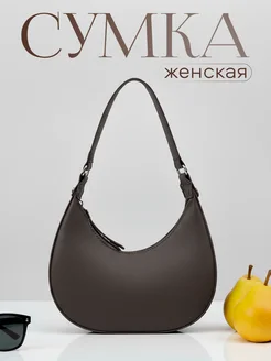 Сумка полумесяц маленькая на плечо темно-коричневая