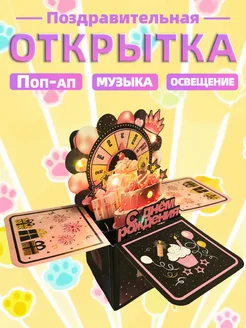 Открытка 3D объемная с днем рождения с музыкой и подсветкой