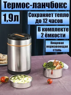 Термос-ланчбокс для еды с контейнерами и ручкой, 1.9 л