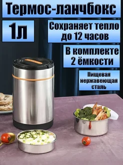 Термос-ланчбокс для еды с контейнерами и ручкой, 1 л