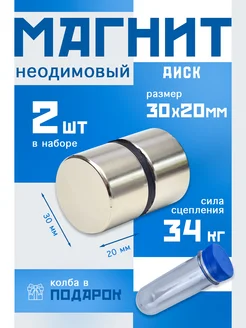 Неодимовый магнит диск 30х30 мм,N42 сила сцепления 50 кг