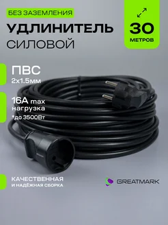 Удлинитель 30 метров силовой ПВС 2x1,5 для газонокосилки