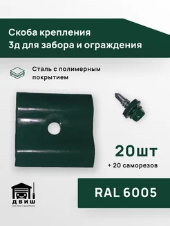 Скоба крепления 3д для забора и ограждения RAL 6005