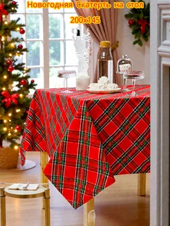 Скатерть на стол тканевая новогодняя 200х145 см рогожка