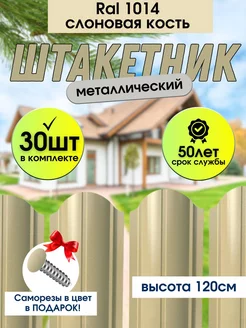 Штакетник металлический забор Слоновая кость 120см RAL-1014
