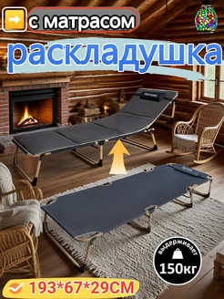 раскладушка с матрасом,взрослая 193х68×30CM до 150 кг