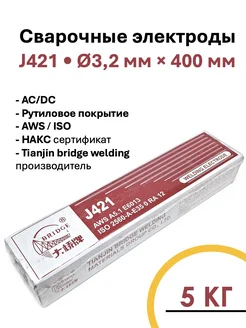 Электроды J421 ф3,2мм х 350мм 5кг Tianjin bridge