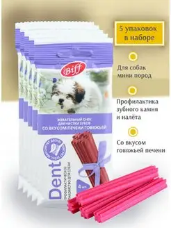 Снек DENT для собак с печенью говяжьей, 5 уп 200 гр