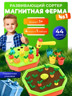 Детский развивающий сортер монтессори Магнитная ферма 4 в 1
