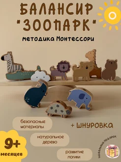Балансир "Зоопарк" деревянный 10 фигурок и шнуровка