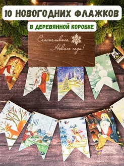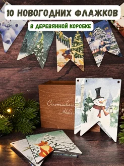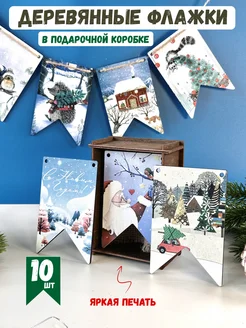 Флажки гирлянда деревянные елочное украшение 10 шт