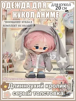 Одежда для кукол аниме20см Длинноухий кролик серый толстовка