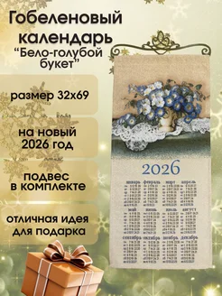 Календарь гобеленовый "Бело-голубой букет" 32х69 см